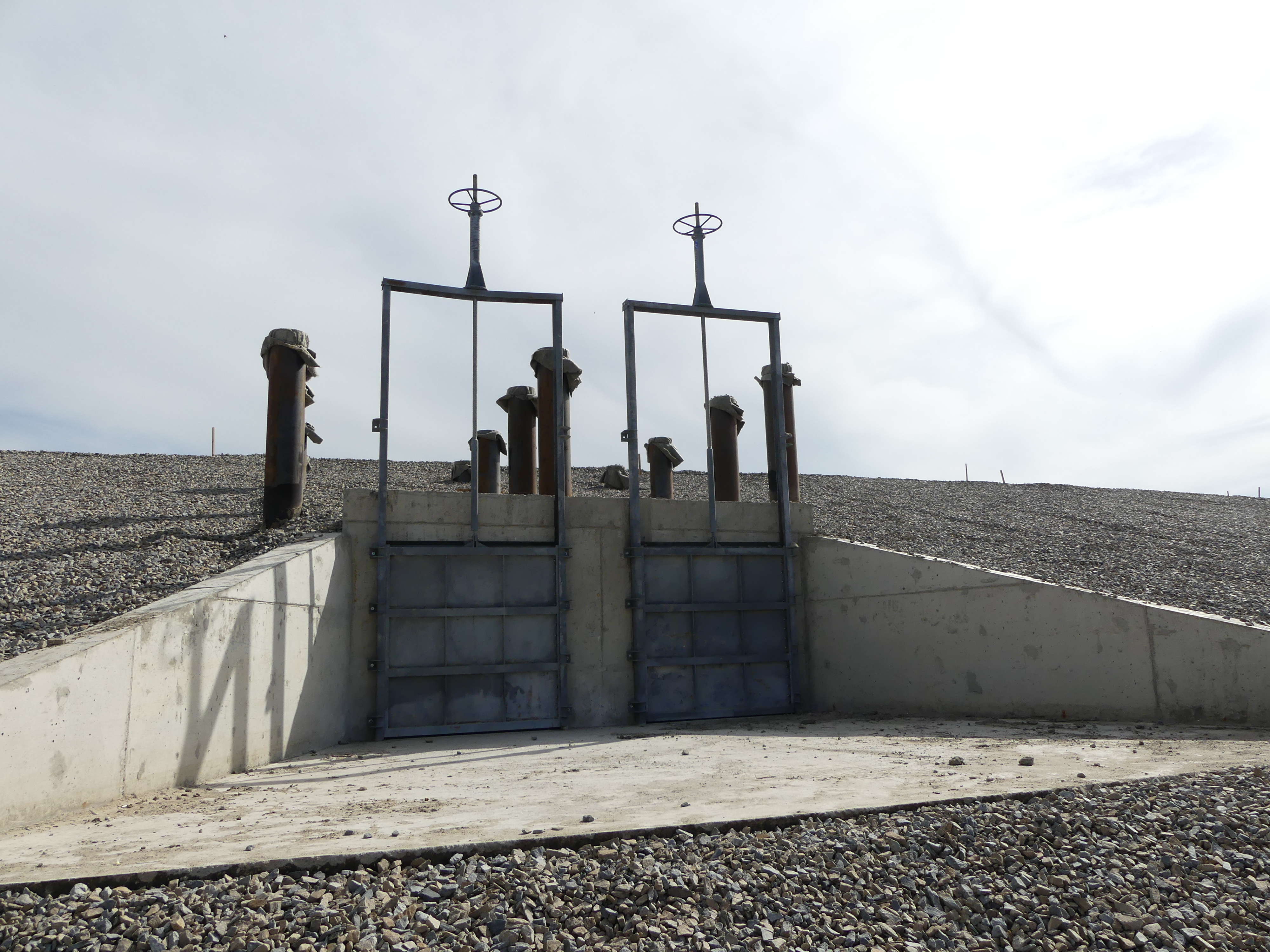 Выполняется обустройство входного оголовка канала и головного регулятора, предназначенного для поддержания оптимального расхода в рыбоходно-нерестовом канале. Для защиты канала от занесения продуктами размыва русла и поймы при «прохождении» паводков по его периметру устраивается дамба обвалования из местного грунта (из выемки). На внешнем откосе дамбы устраивается берегоукрепление. По гребню дамбы устраивается эксплуатационная дорога.