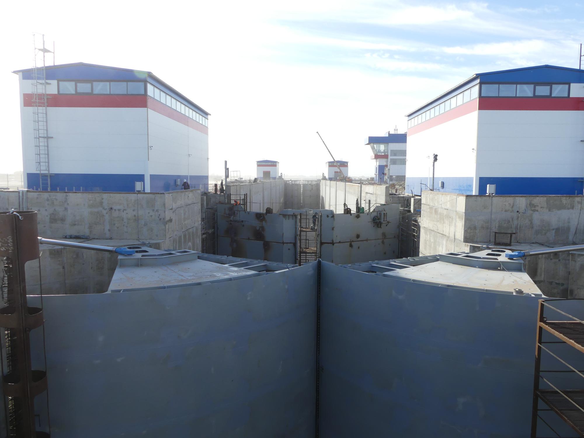 Рыбопропускной шлюз, создаваемый для пропуска проходных и полупроходных рыб, имеет габарит 118 м при полезной ширине камеры 10 м.
