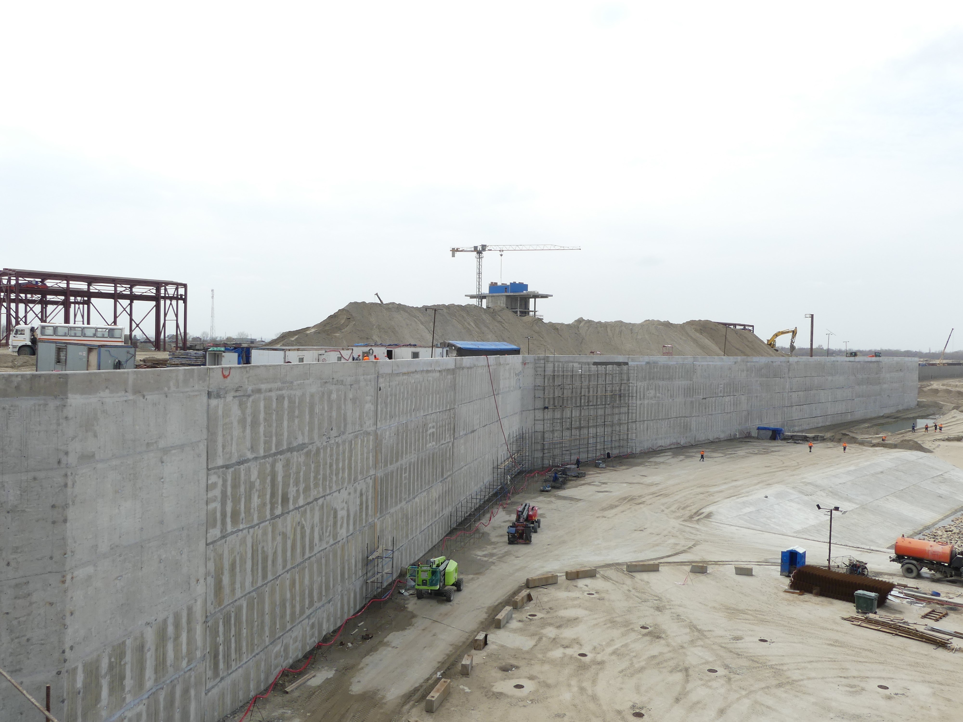 Ведется строительство объектов подсобного и обслуживающего назначения (ОПСТВН): АБЗ, ремонтно-механических мастерских, гаража, навеса, здания охраны, складов, защитного сооружения гражданской обороны, водосбросных очистных сооружений и канализационных очистных сооружений. Все здания - под крышей, тепловой контур закрыт.