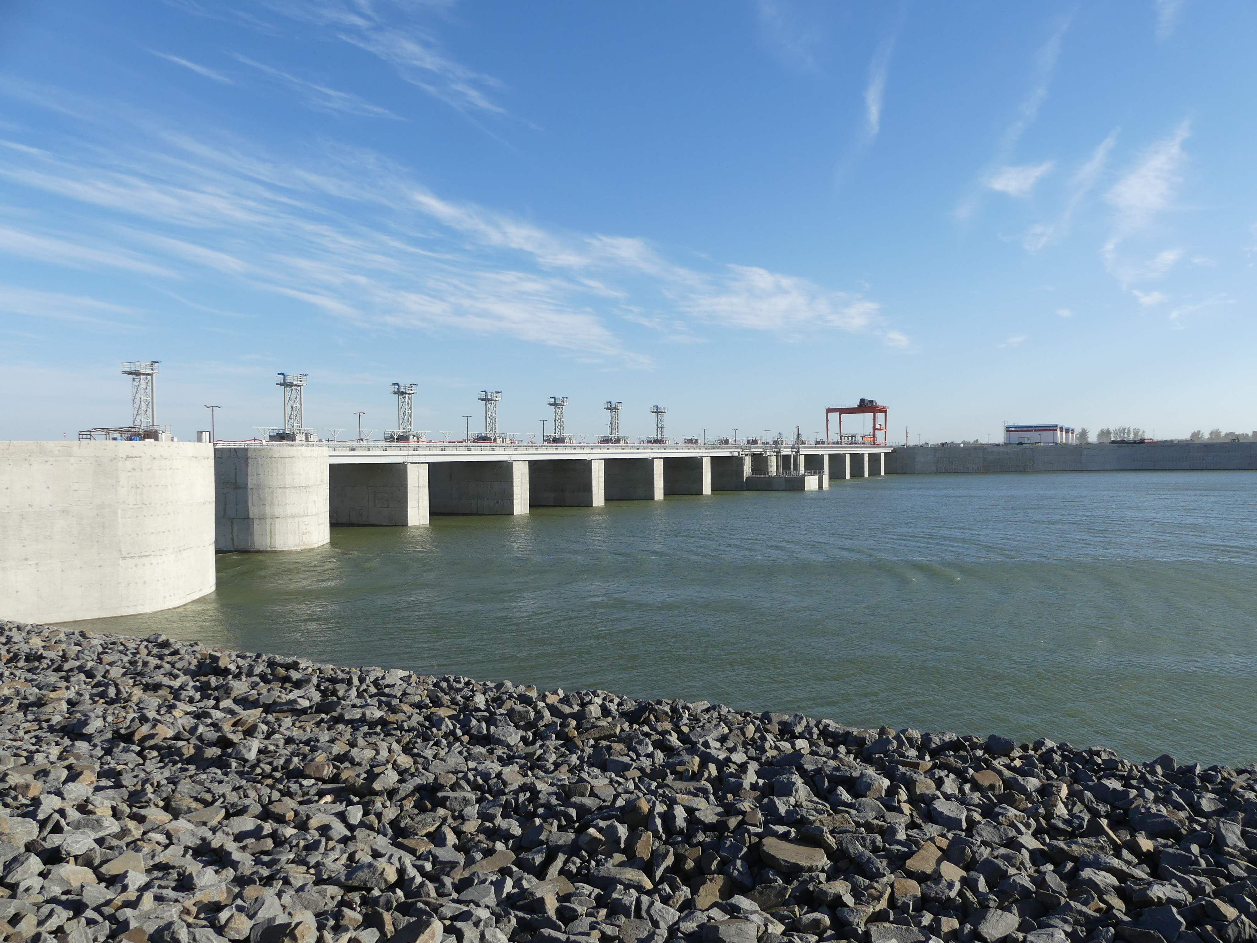 Ввод во временную эксплуатацию 1-й очереди гидроузла позволит приступить к реализации строительства сооружений в левой протоке, перепустив судоходство через камеры шлюза. Для этого будут разобраны технологические перемычки для затопления плотины, а затем и судоходного шлюза - для осуществления проводки первого судна.