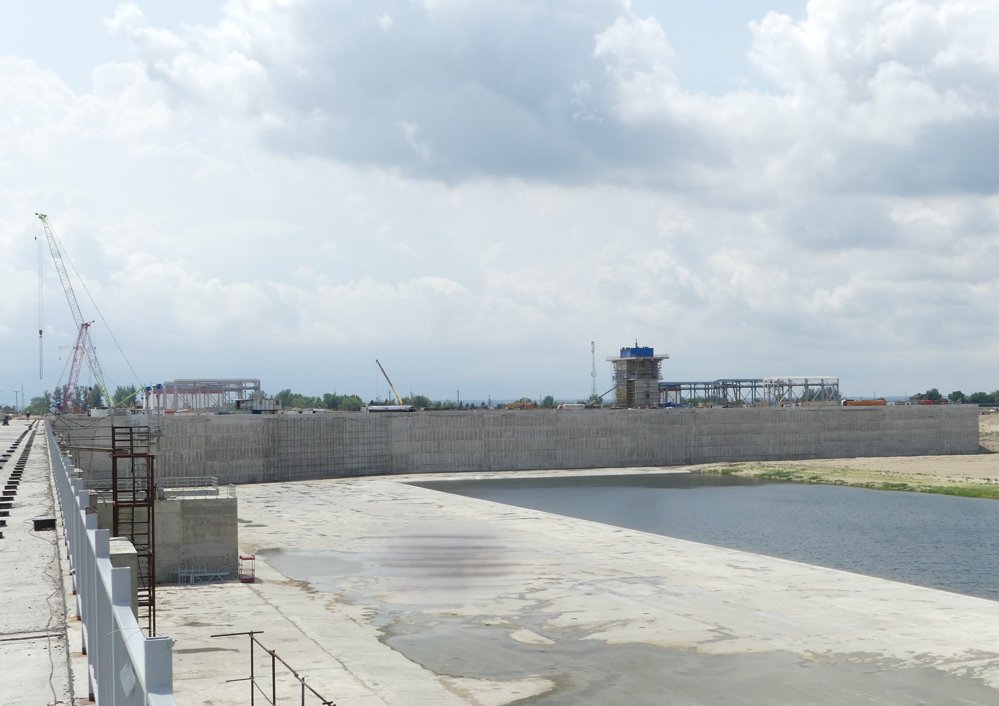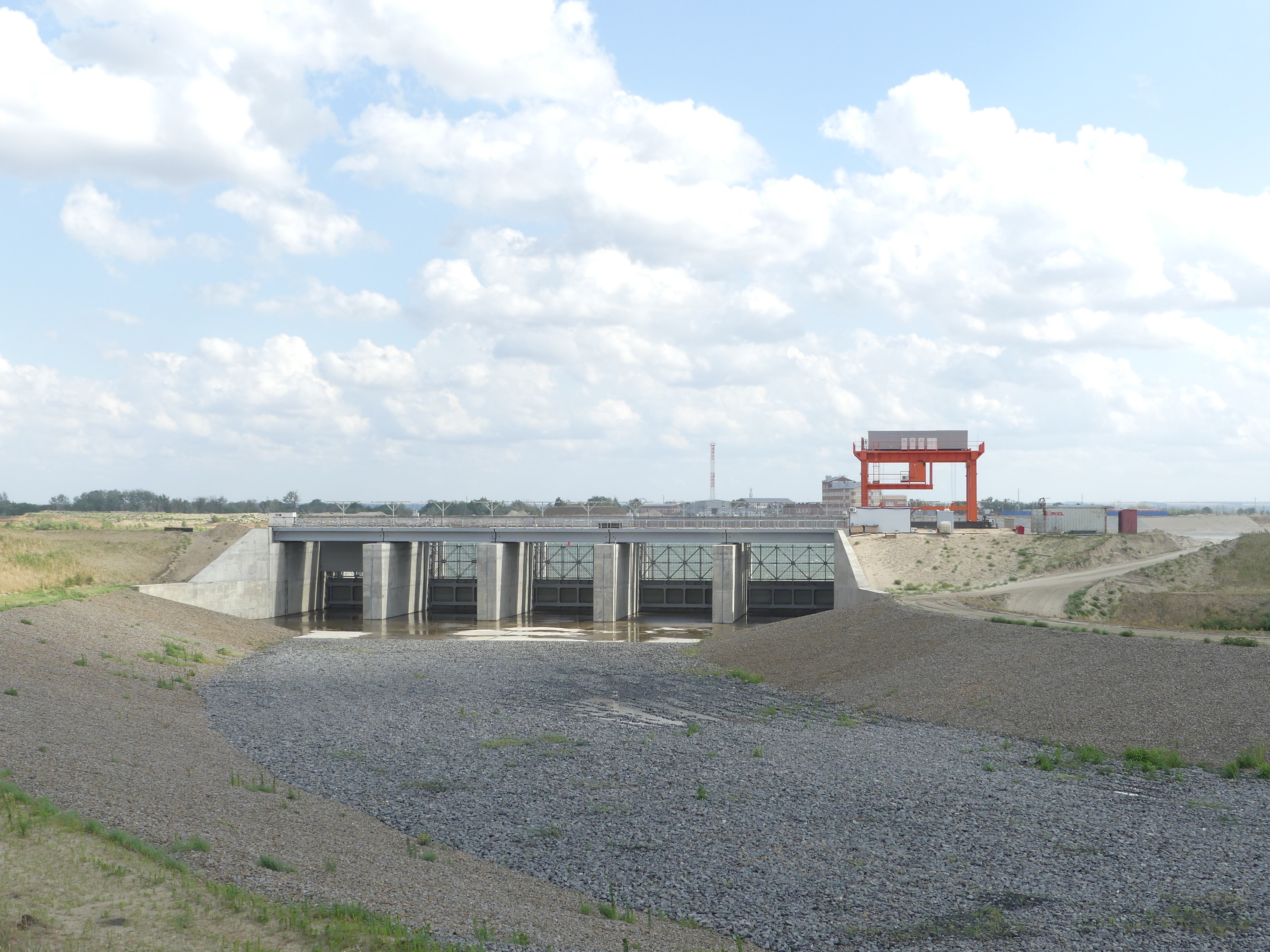 На установленном оборудовании Водосбросной плотины полным ходом идет пуско-наладка: ведутся работы по автоматизации систем управления технологическими процессами - приведению затворов в рабочее состояние с помощью установленных гидроцилиндров. Ведется монтаж козлового крана, предназначенного для установки аварийных затворов, а также замены и ремонта рабочих затворов.
