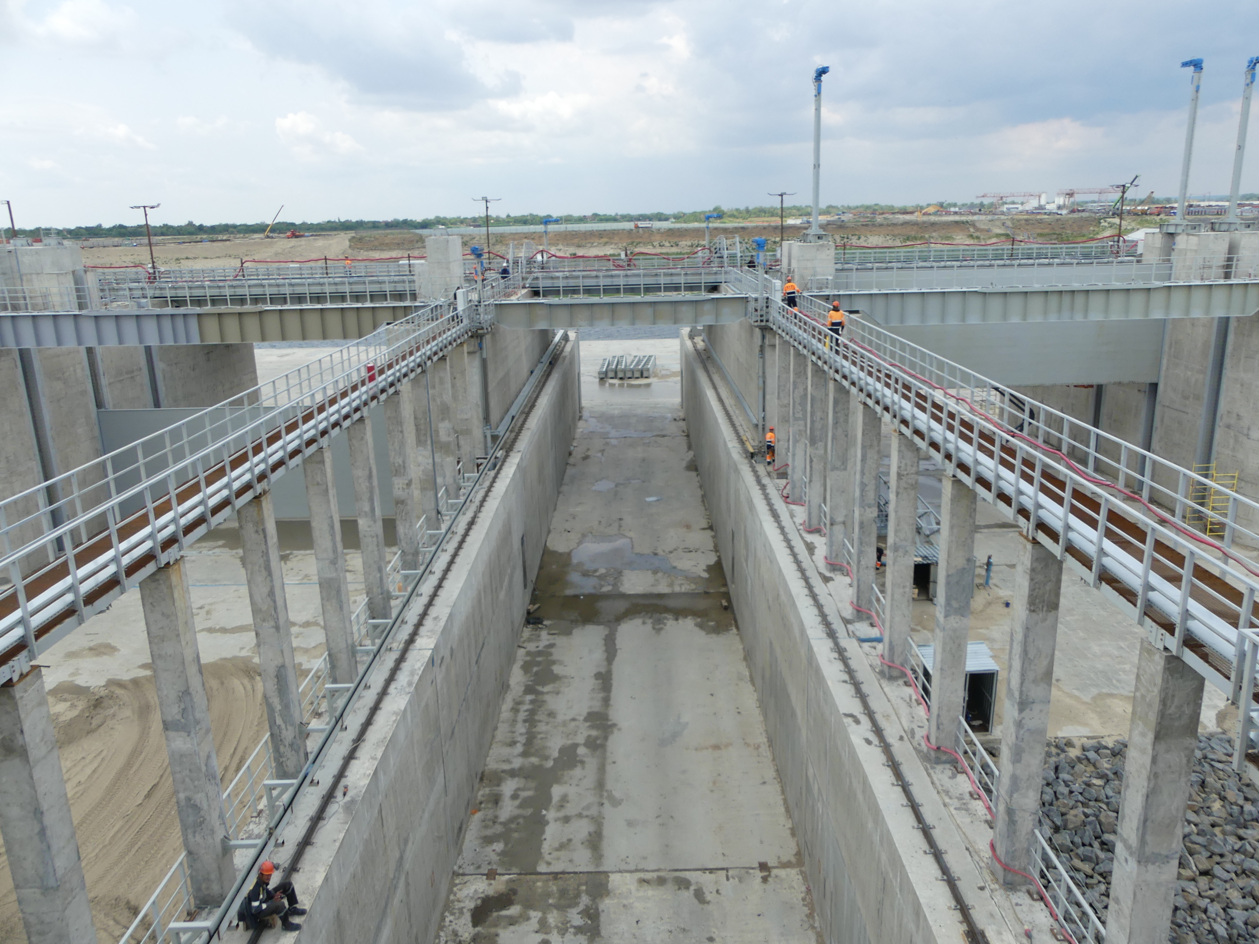 На объектах первого пускового комплекса Багаевского гидроузла (Судоходный шлюз, Водосбросная плотина и Рыбоходно-нерестовый канал) завершаются работы по монтажу гидромеханического оборудования.