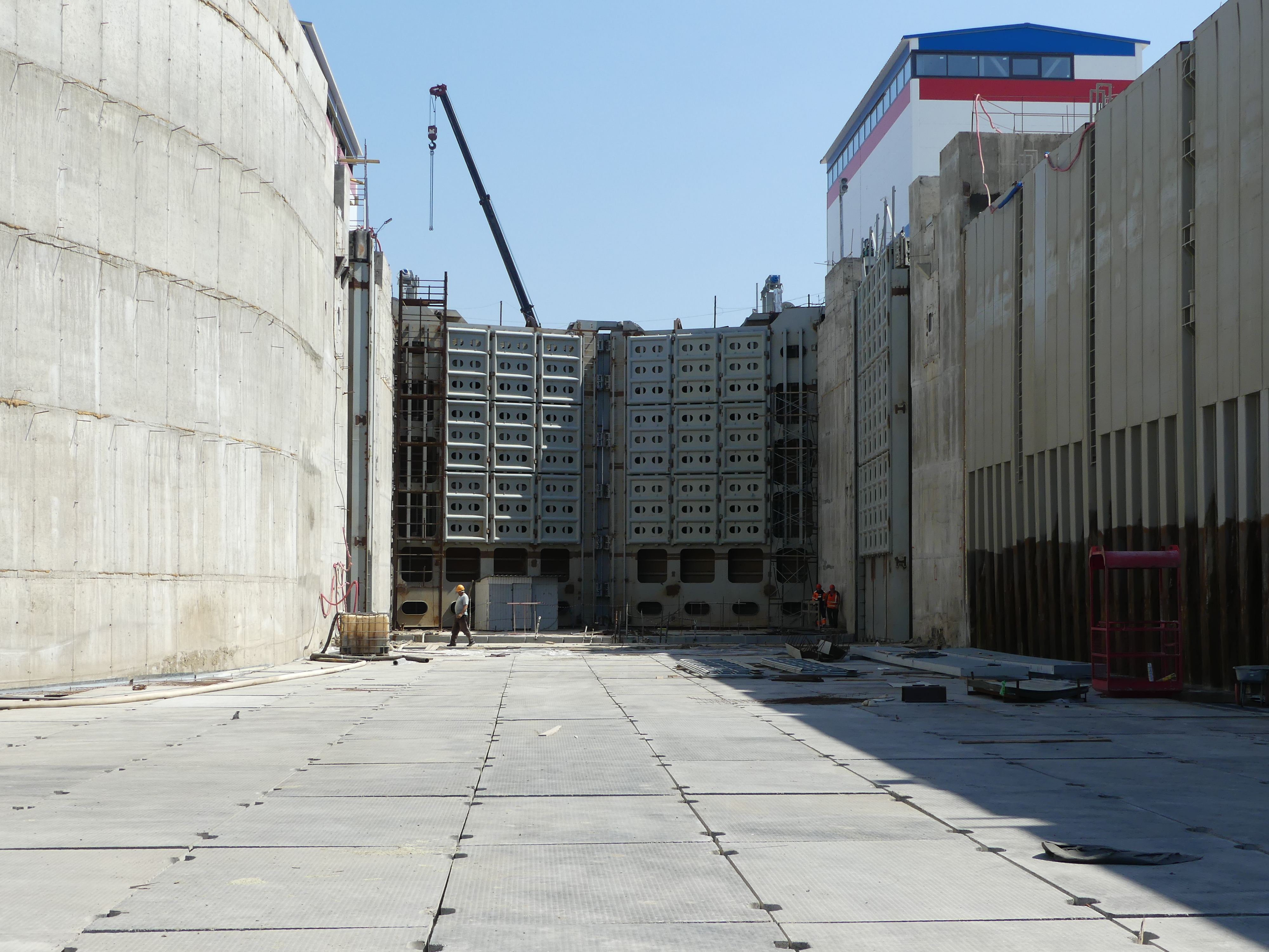 В рамках пуско-наладочных работ осуществляется автоматизация систем управления технологическими процессами - воротами шлюза для приведения их в рабочее состояние. На плотине продолжается монтаж козлового крана.