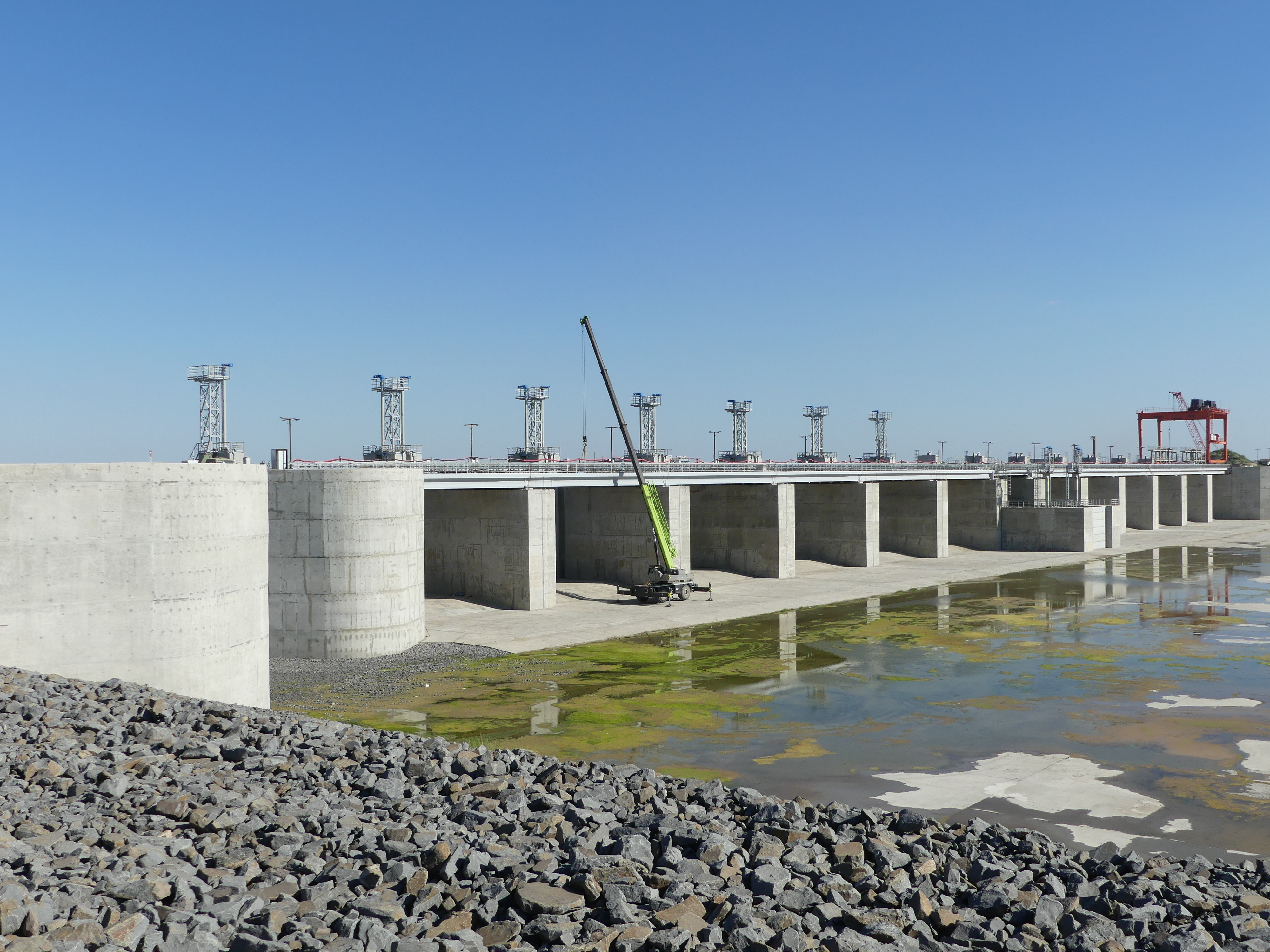 Строительная готовность объектов первого пускового комплекса Багаевского гидроузла составила 96 %. В составе объектов: Судоходный шлюз, Водосбросная плотина и Рыбоходно-нерестовый канал.
