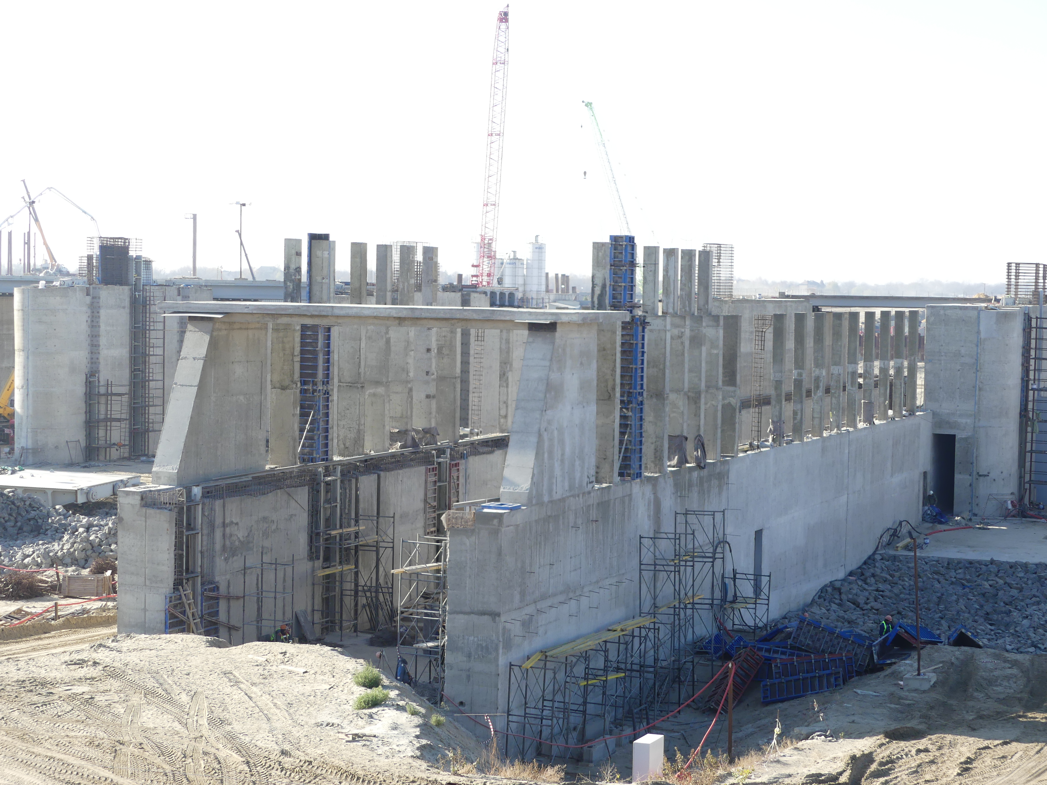 В ноябре 2024 года общий объем уложенного бетона в конструкции Водосбросной плотины, Судоходного шлюза и РНК составил 265 400 м3 или 94% от проектного объема первого пускового комплекса, из них в ноябре 2024 года выполнено 9 800 м3 бетонных работ.