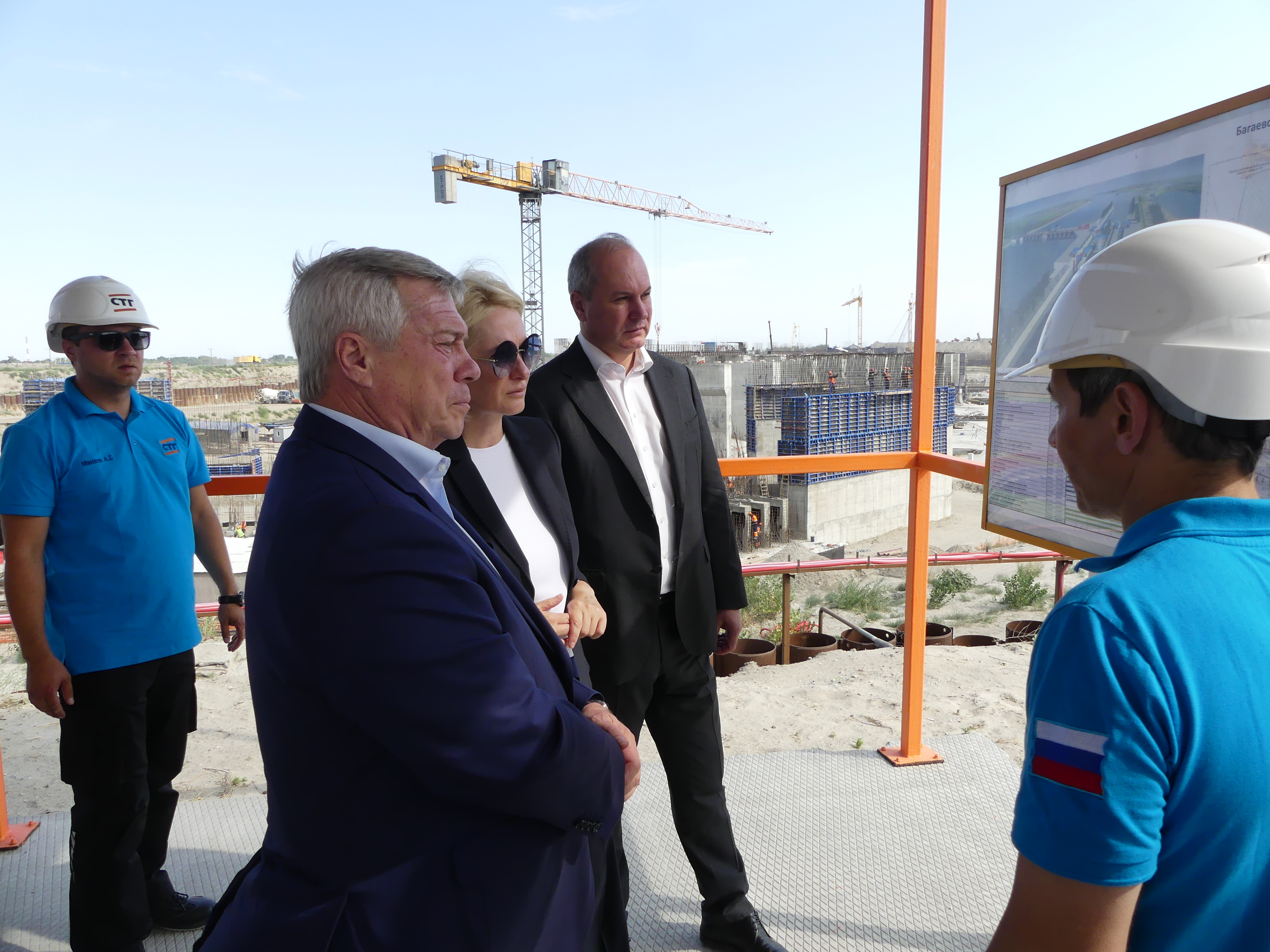 3 июля 2024 года состоялся рабочий визит Губернатора Ростовской области Василия Голубева и Виктории Абрамченко на строительную площадку Багаевского гидроузла.